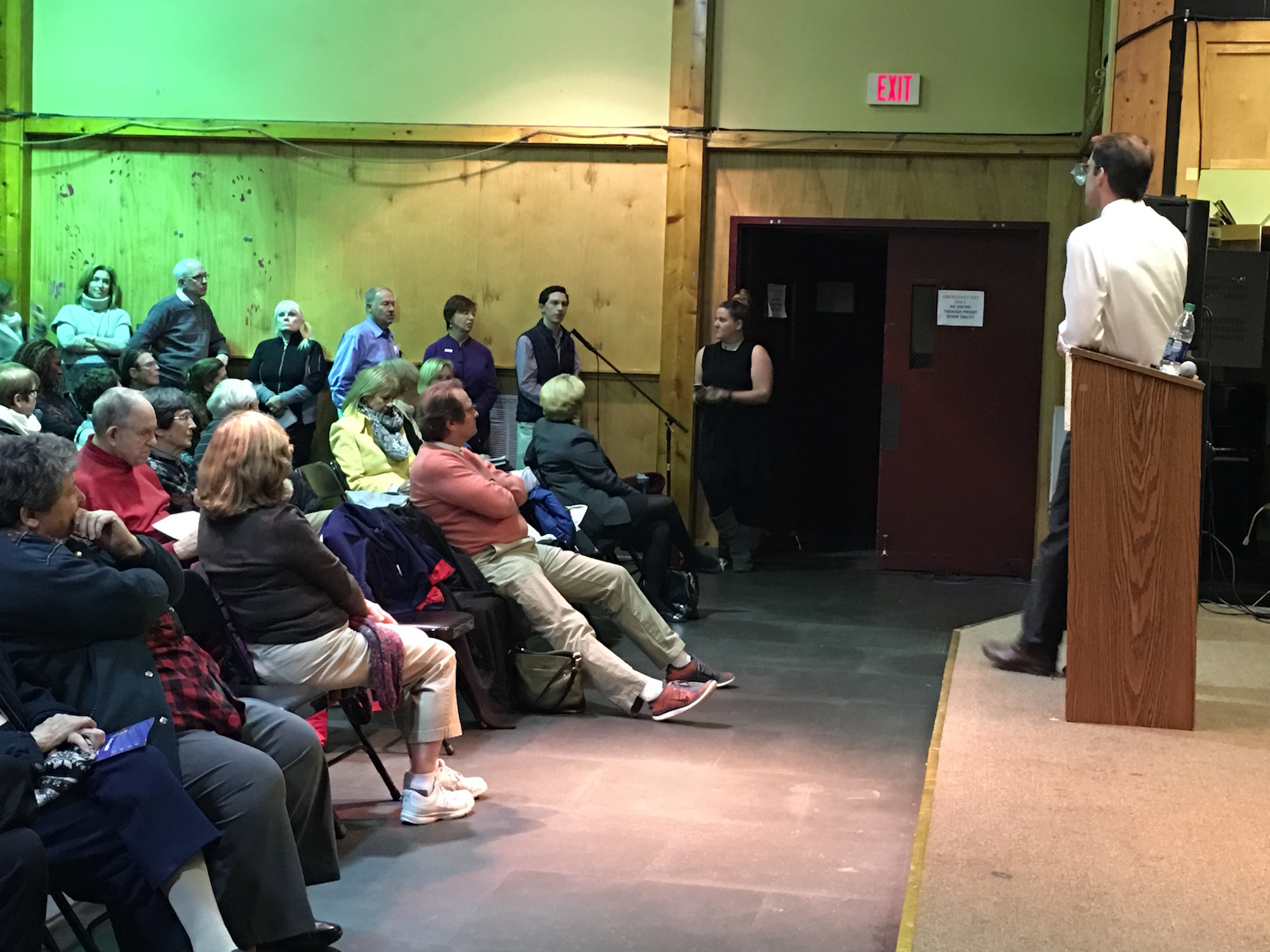 Congressman Jim Himes (CT-4), who represents Wilton in the nation’s capital, stopped by Trackside Teen Center for a Community Town Hall on Thursday, Jan. 21. With an overflow crowd of about 70-80 people, the congressman updated his constituents in attendance with a rapid fire round-up of what kind of legislation he’s worked on, supported and disagreed with in the past year. He took questions from a variety of audience members on subjects ranging from student loan debt to campaign finance reform to immigration and terrorism.